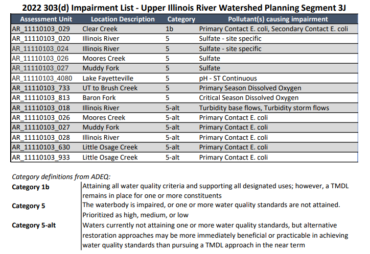 Arkansas Impairments - Upper Illinois River Watershed