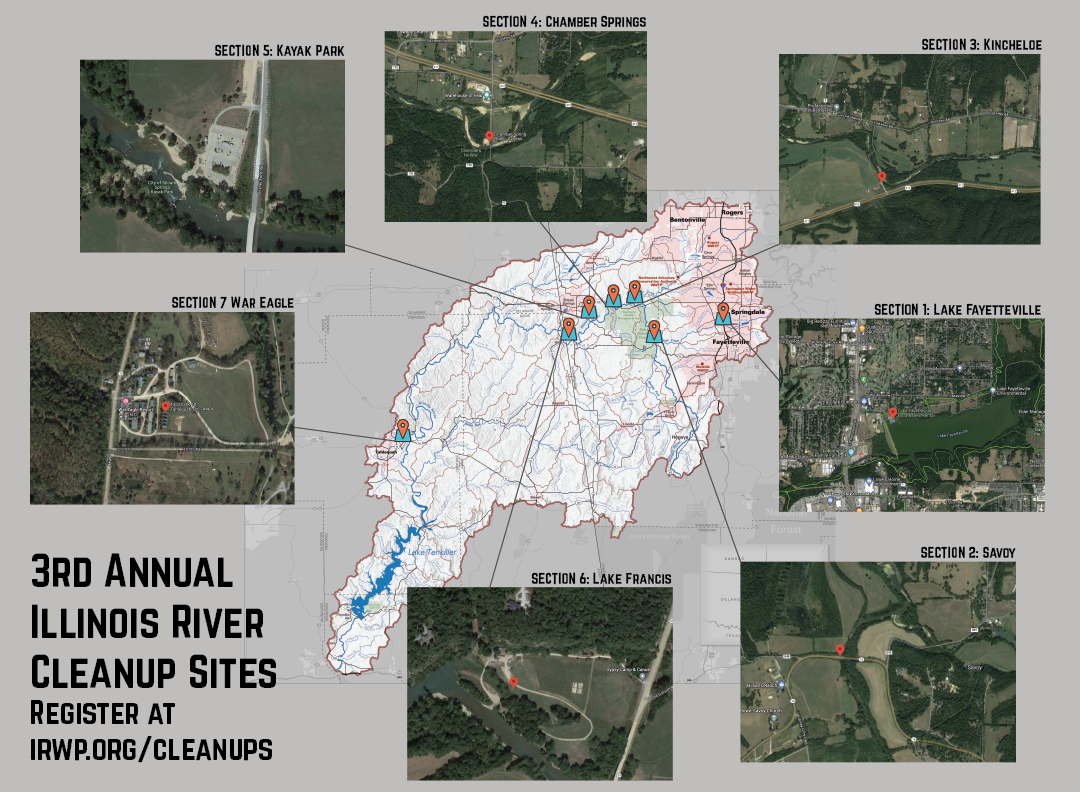 Select a location where you would like to cleanup and register below. If you are with a group or family (or want to form your own group), come up with a shared group name and let us know in the form. We can’t wait to see you all out on the Illinois River!