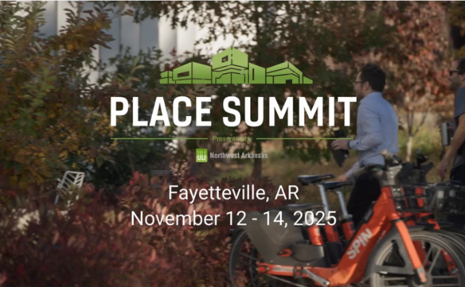 Back to All Events 2025 ULI Place Summit Wednesday, November 12, 2025 9:00 AM Friday, November 14, 2025 5:00 PM Fayetteville Town Center 15 West Mountain Street Fayetteville, AR, 72701 United States (map) Google Calendar ICS REGISTER HERE! The ULI NWA Place Summit is a three-day gathering that brings together land use and built environment professionals who are passionate about creating exceptional places. To see full event details visit placesummit.uli.org