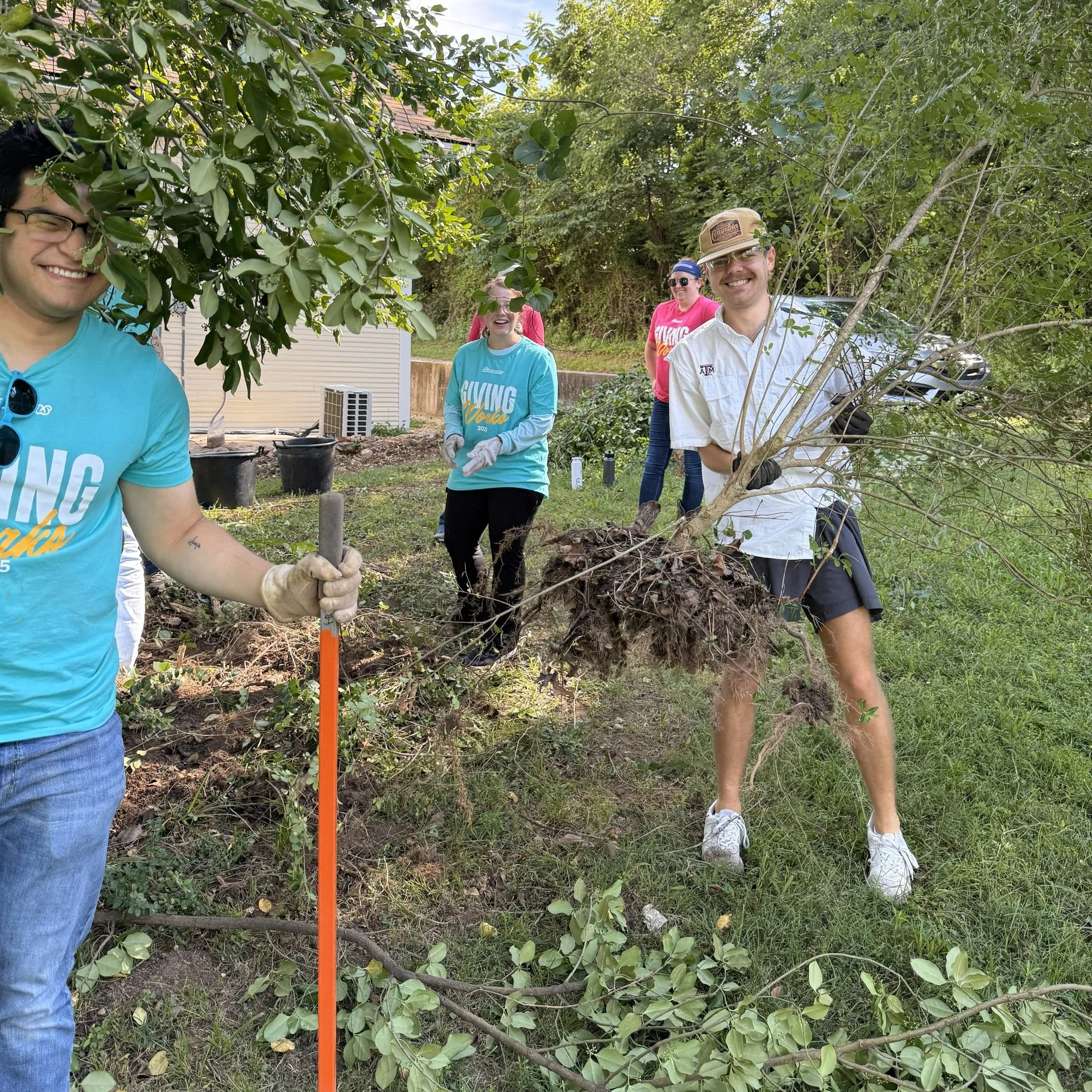 Simmons brought 80 volunteers to an invasive plant removal event in Cave Springs!